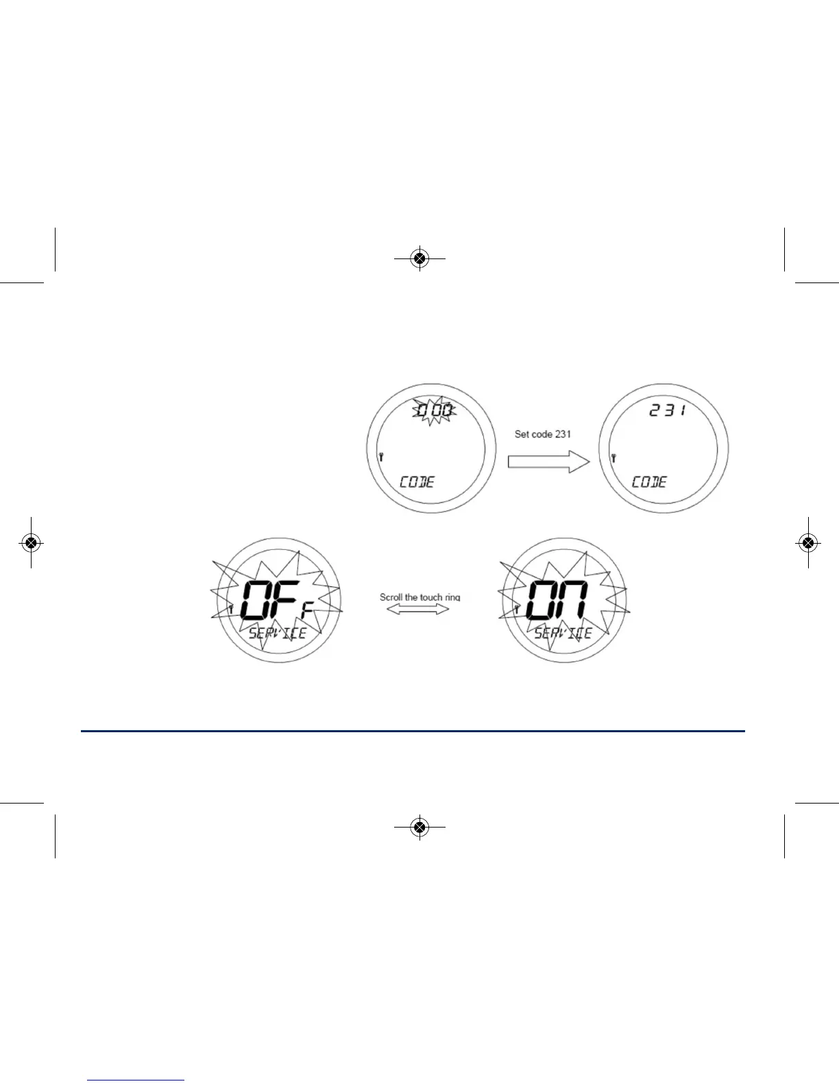If you require SERVICE mode activated, use the touch ring to scroll from OFF to ON and press OK.