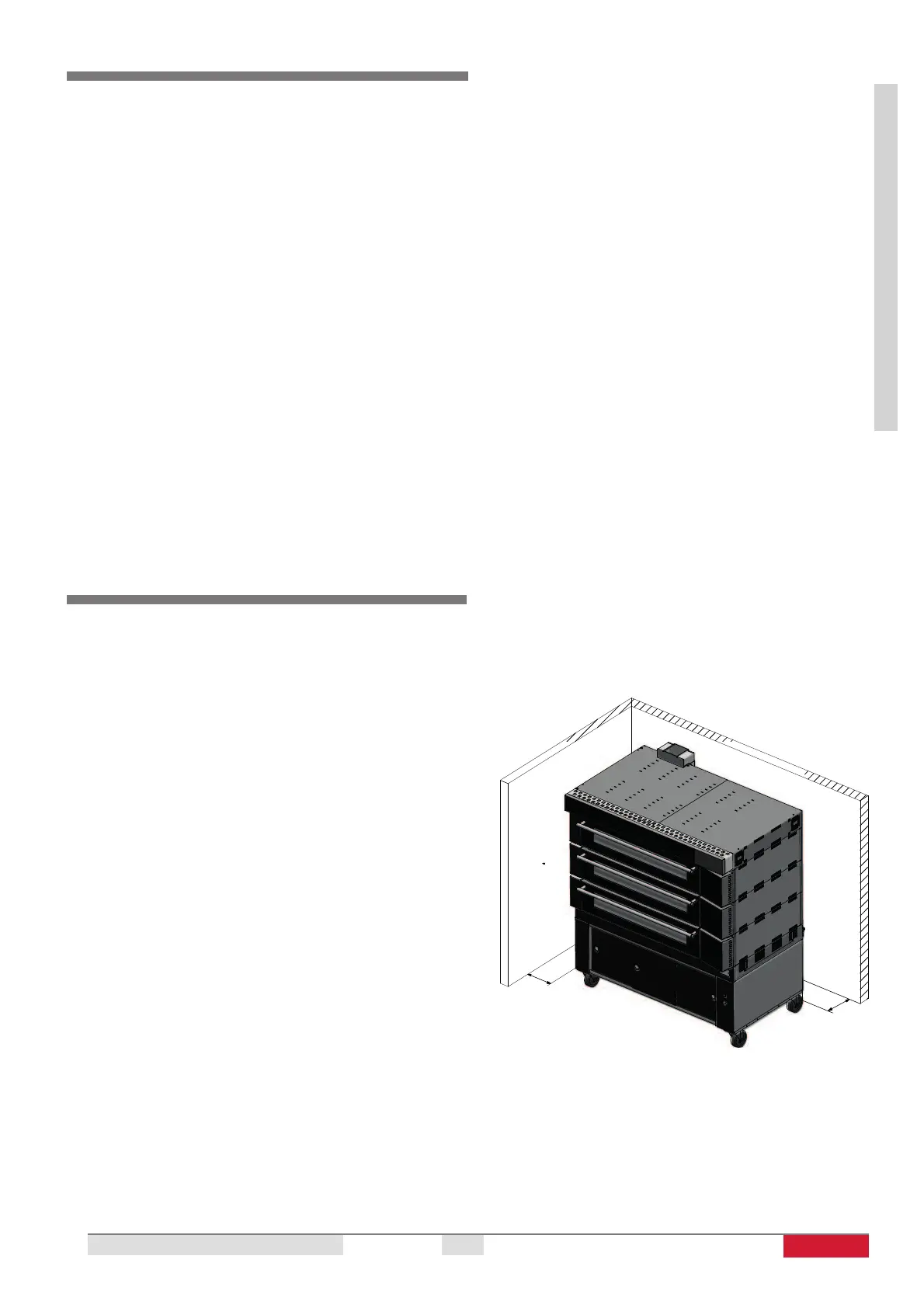 El The position of the oven regarding the side and back wall of