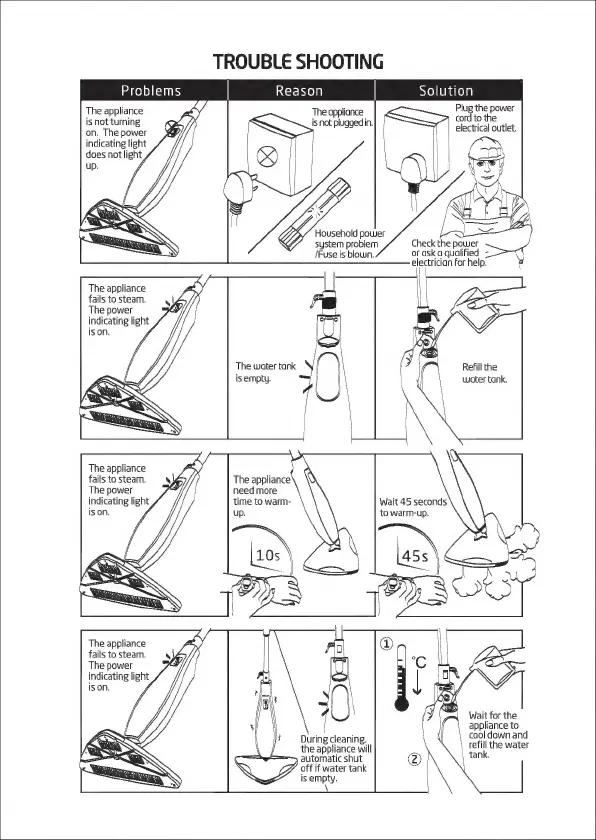 Salva STM-402 - Troubleshooting; Appliance Not Turning On; Appliance Fails to Steam