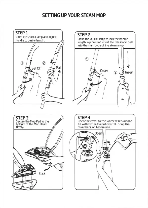 Salva STM-402 - Setting Up Your Steam Mop; Adjusting Handle Length; Assembling Pole and Body; Attaching Mop Pad