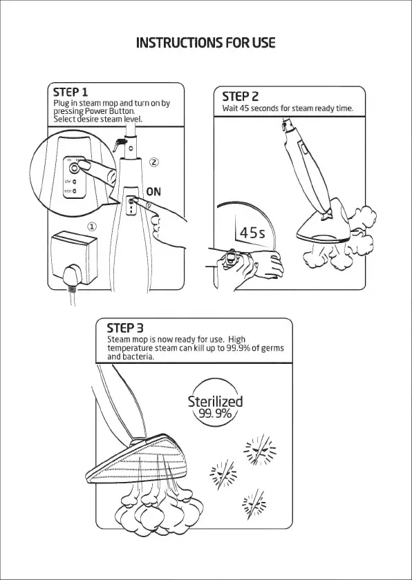 Salva STM-402 - Instructions for Use; Powering On and Steam Level; Steam Ready Time; Sterilization Capability