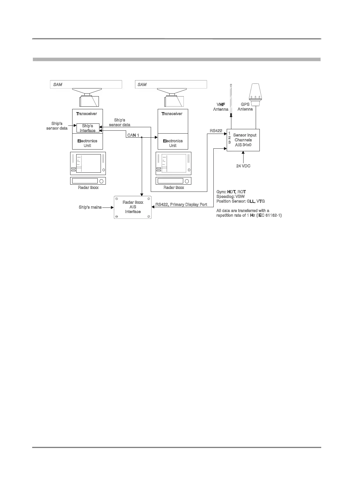 The AIS 3410 is connected to the Ship’s Interface by means of the additional Radar 9xxx AIS Interface.