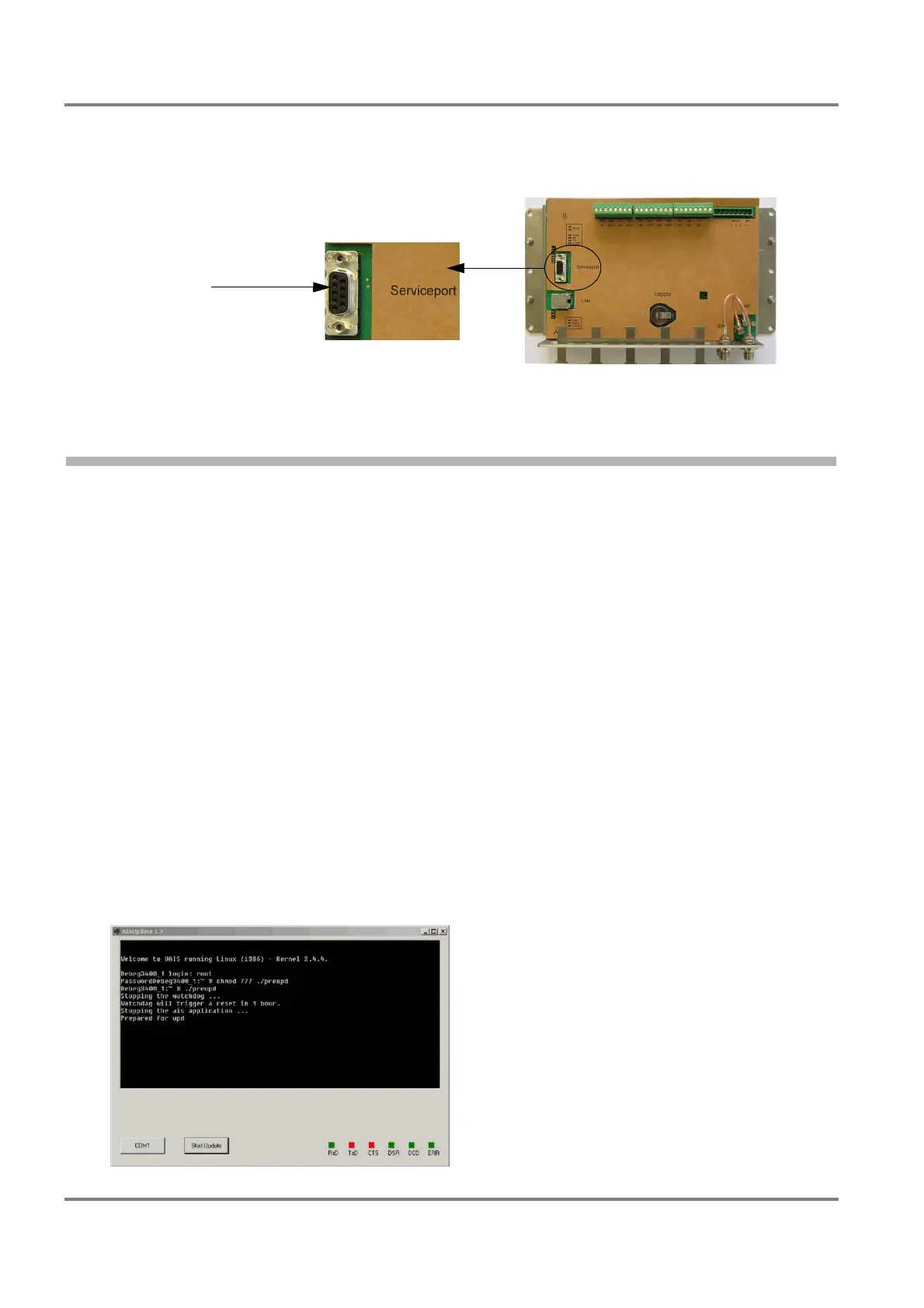 The cable must be connected to the serial service interface of the computer and to the connector on the