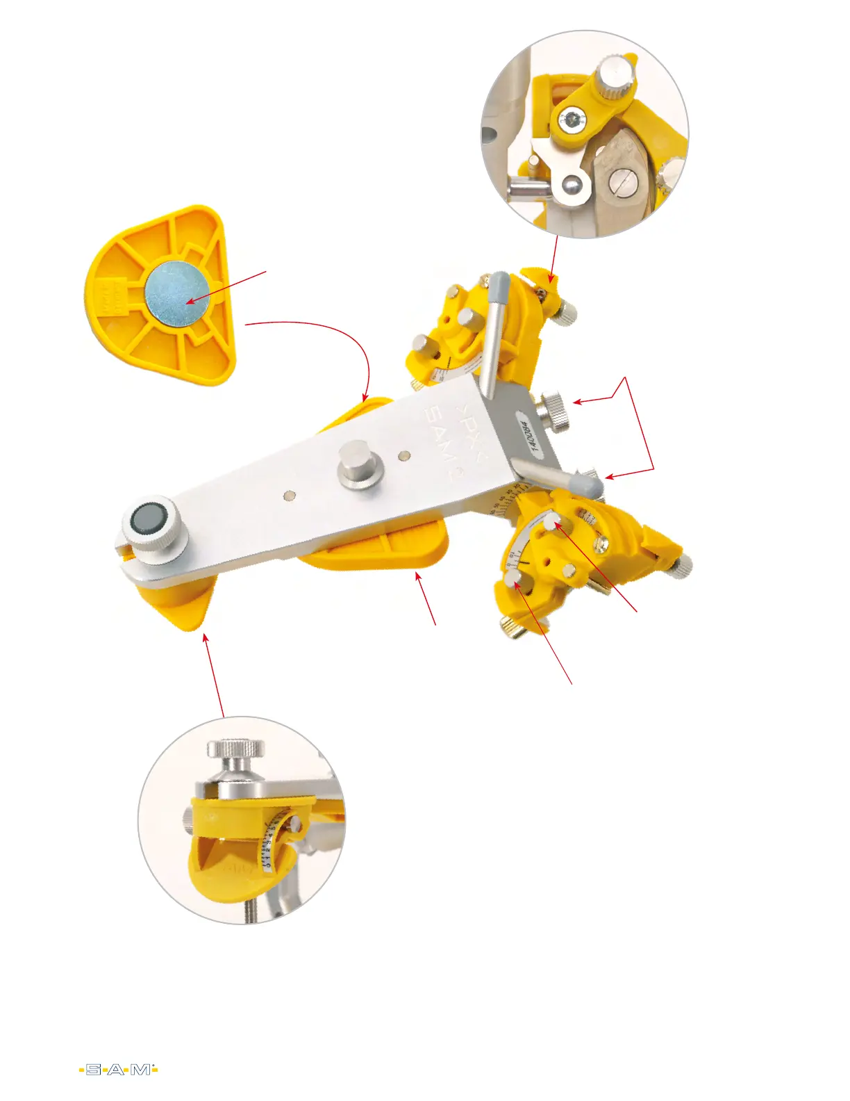 Sam 2PX - Articulator Upper Member Components; Centric Lock and Adhesion Plate; Mounting Plates and Adjustments; Optional Incisal Table Feature