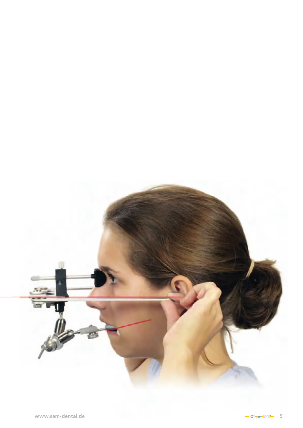 interpupillary line and the facebow. The silicone nasion support makes the transfer more comfortable for the patient.