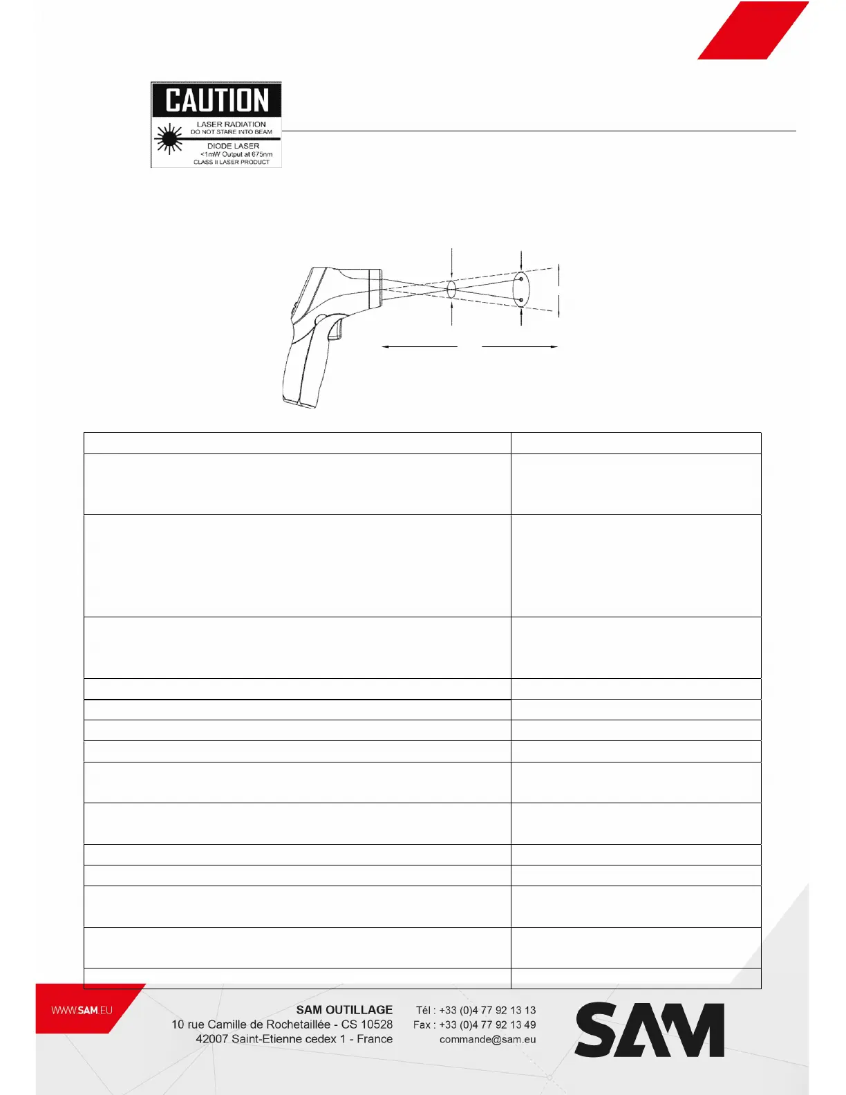 Diode laser output <1mW, Wavelength 630~670nm,