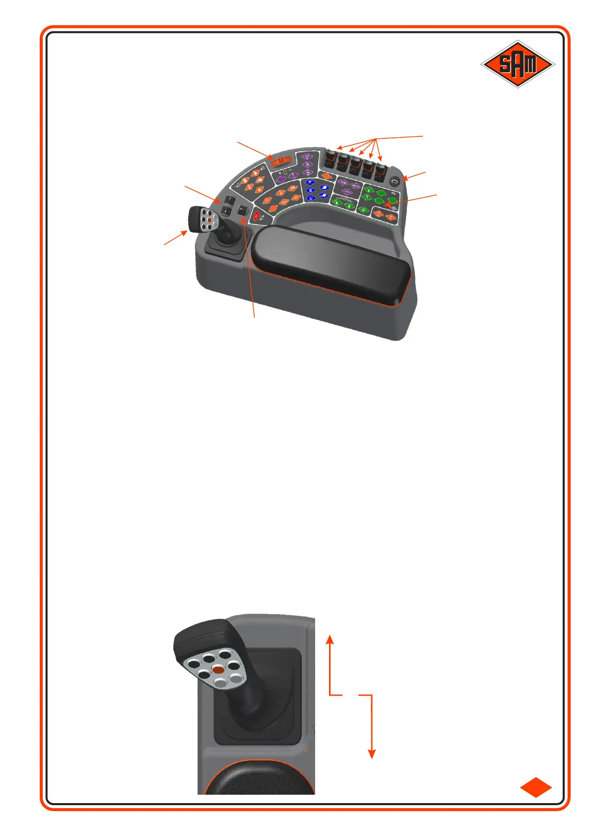The Armrest Control Console contains all the essential controls for the machine, which include Transmission