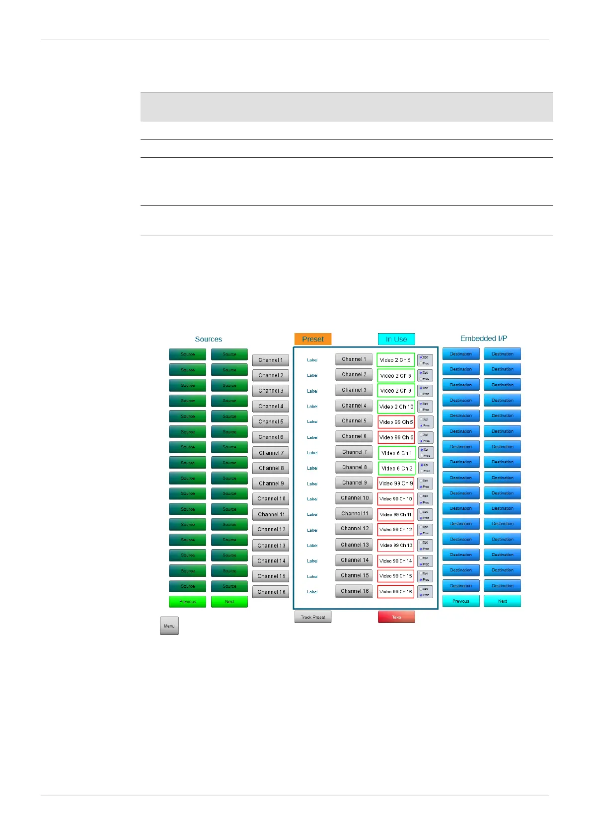 audio channels of video source 99 they are set up from the shuffler, see section 9.19.2.4.