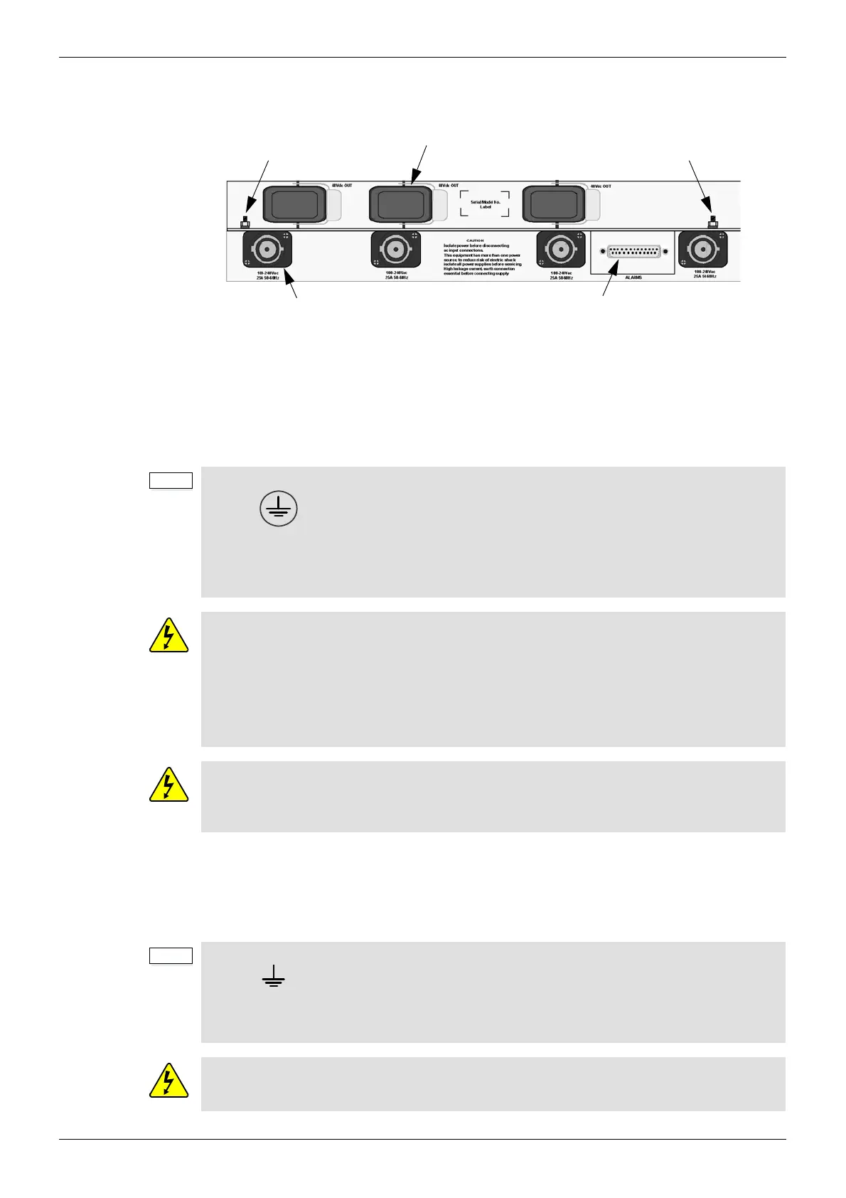 • The Protective earth is indicated on the power supply shelf by this symbol: