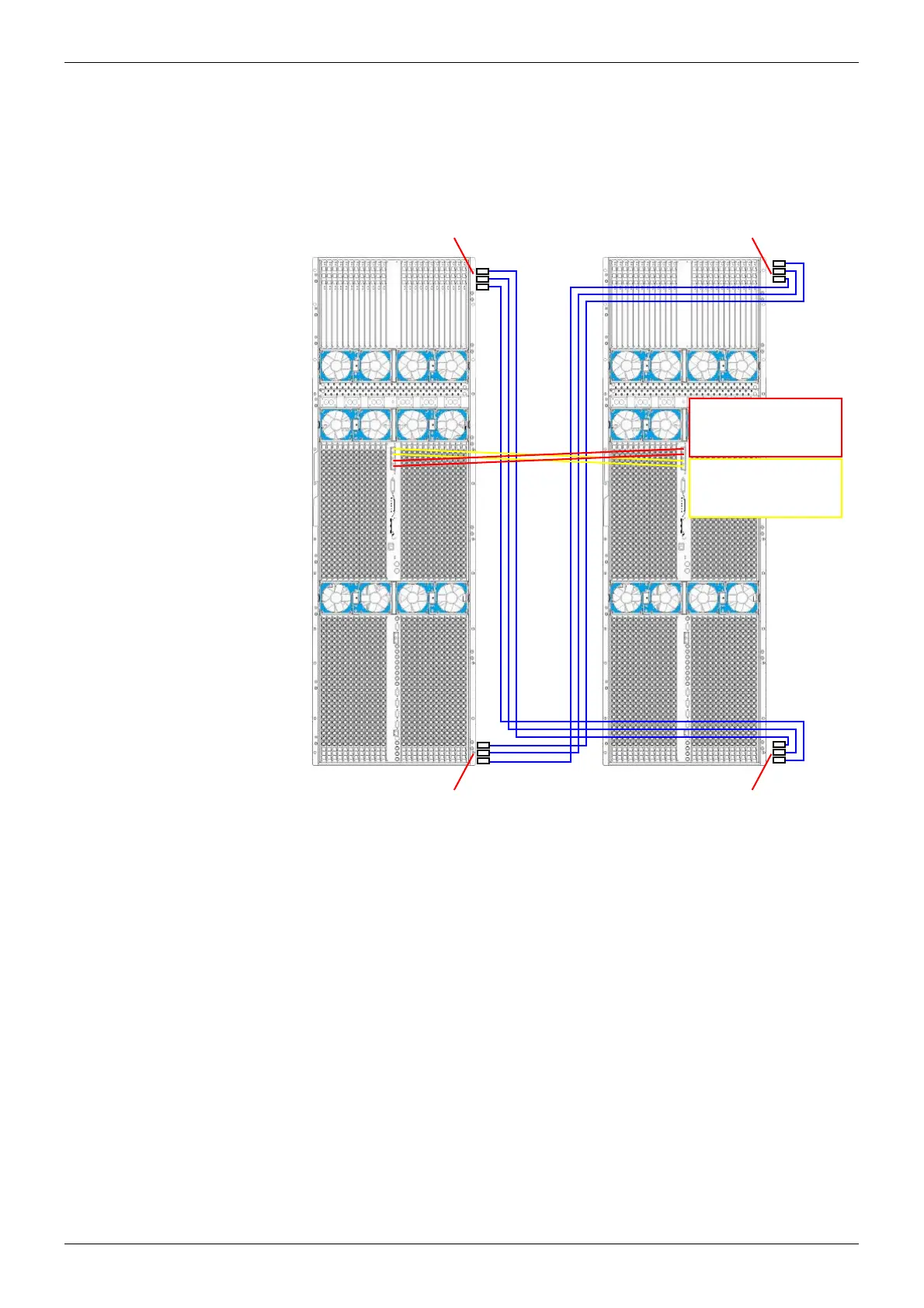 Figure 139 Two Sirius 850 Frames Connected Together (slot 1 cabling shown as an example)