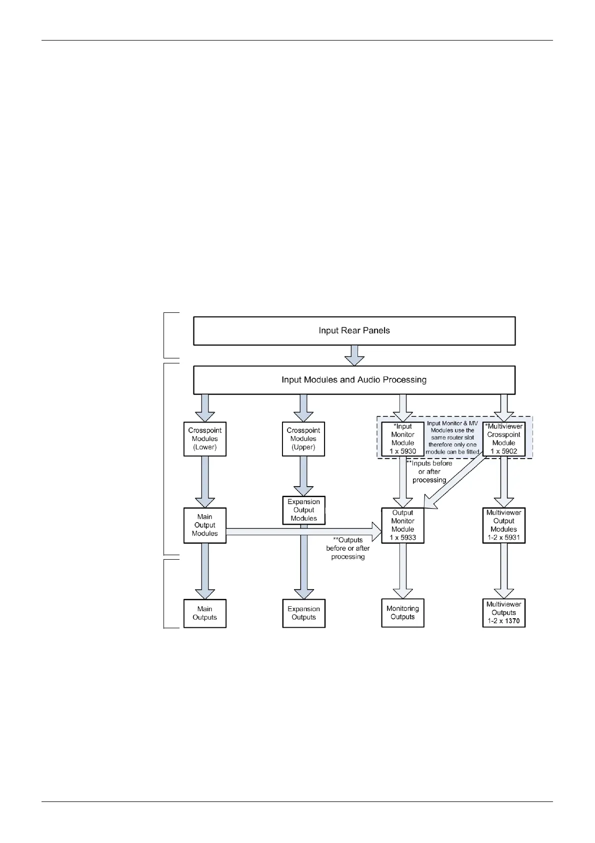 If the Multiviewer Crosspoint Module is fitted it receives signals from the input modules after