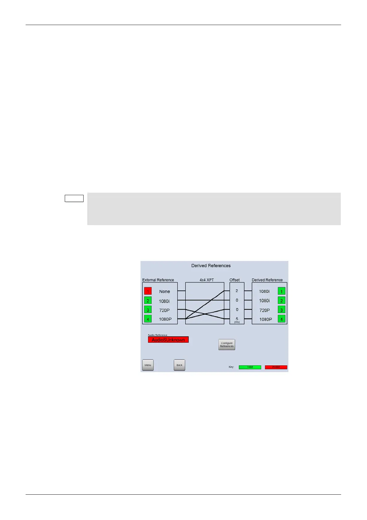 references can have an offset applied if required. The audio reference input status is also