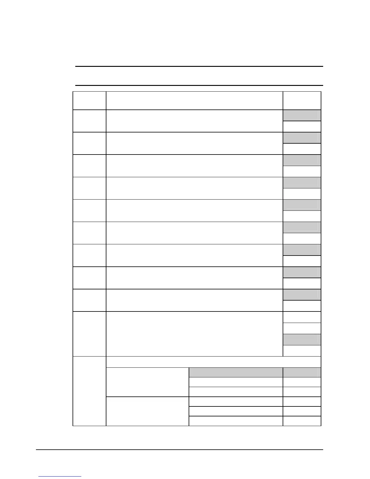 NOTE: Shaded areas are the default settings, in other words, the shaded area