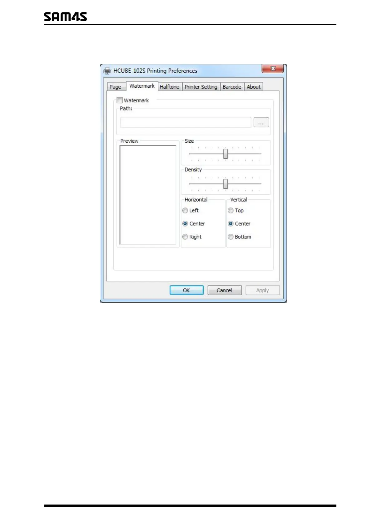3) Click Watermark”. Set watermark to print (Only BMP file can be selected).