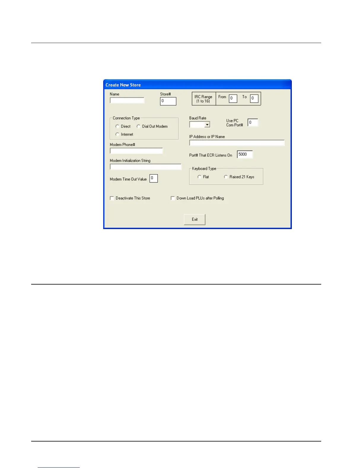 4. Click Exit to save store information.