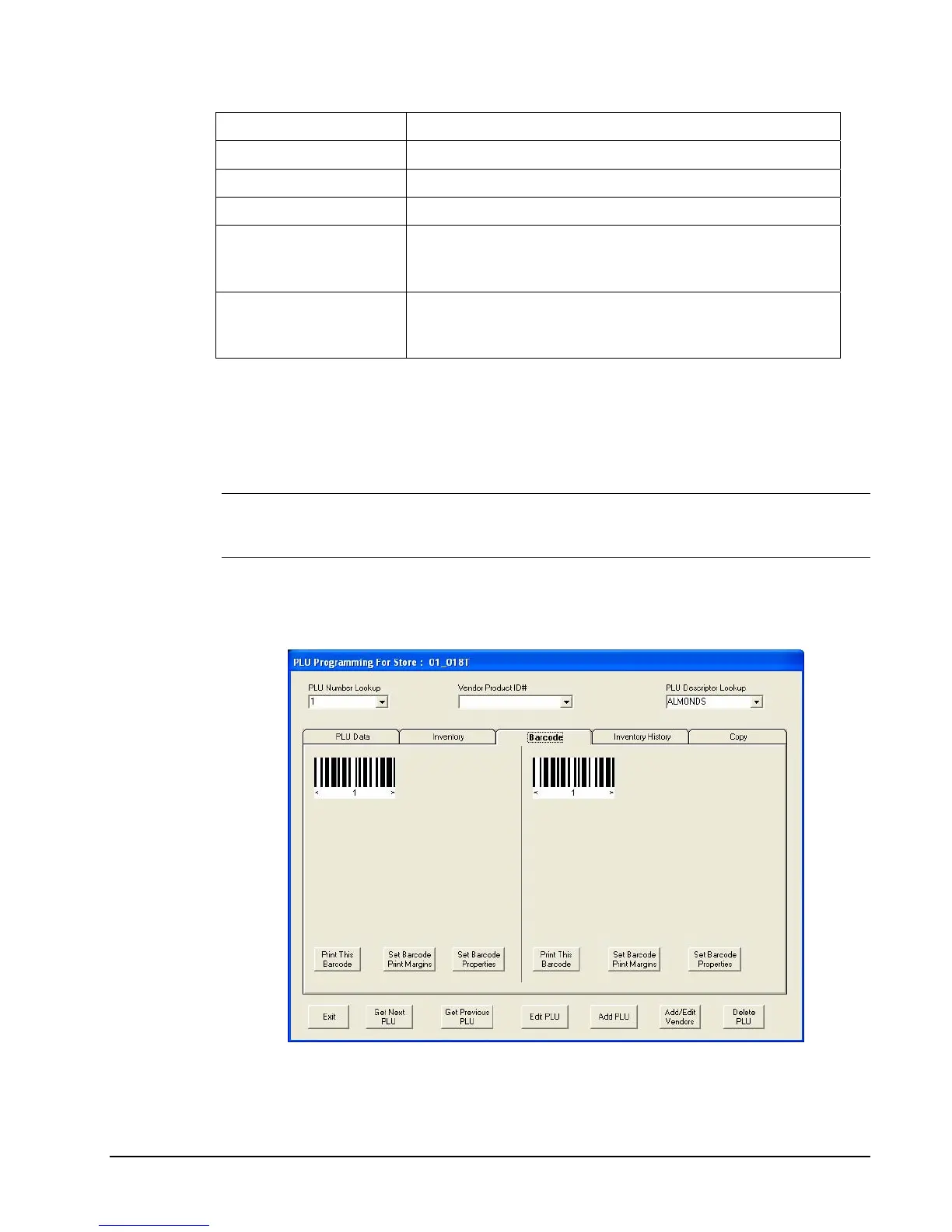 1. Select the Barcode tab from the PLU programming screen. The screen displays a view