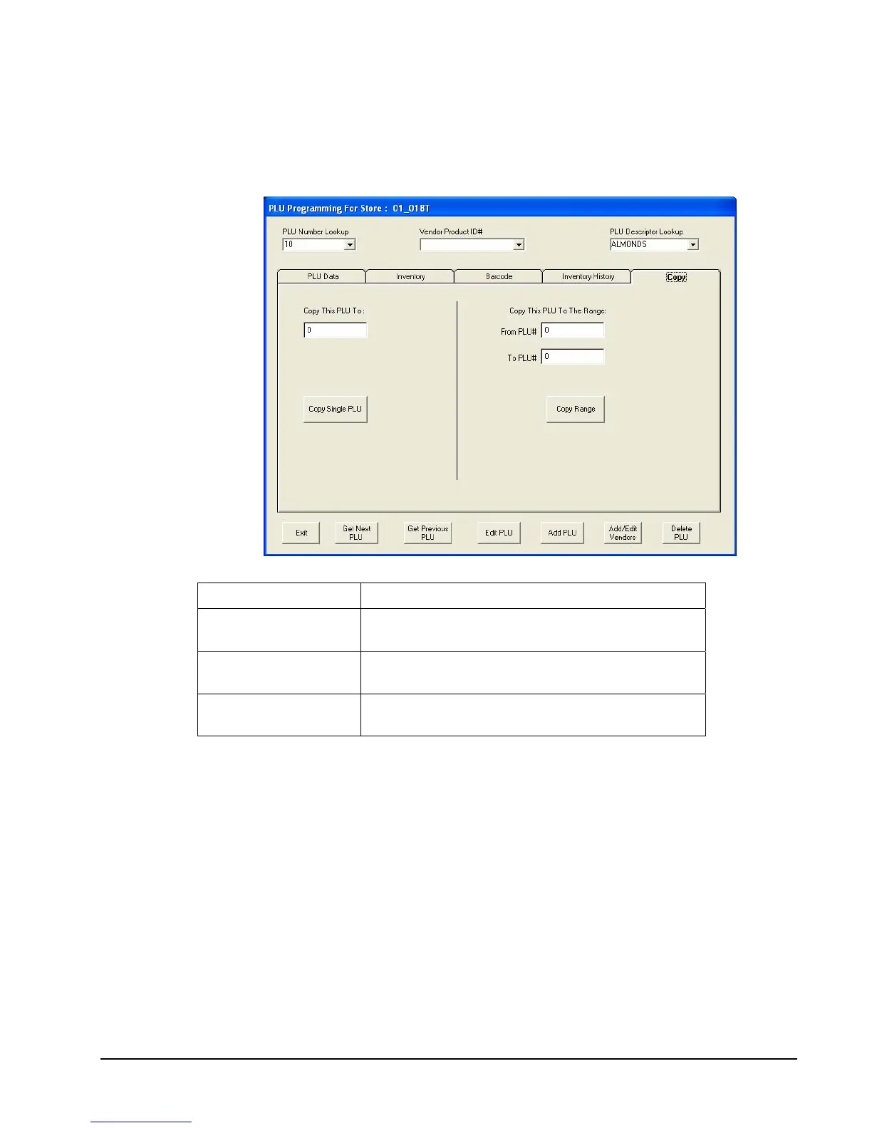 Copy tab. This function will assist you in setting a large number of PLUs with similar option