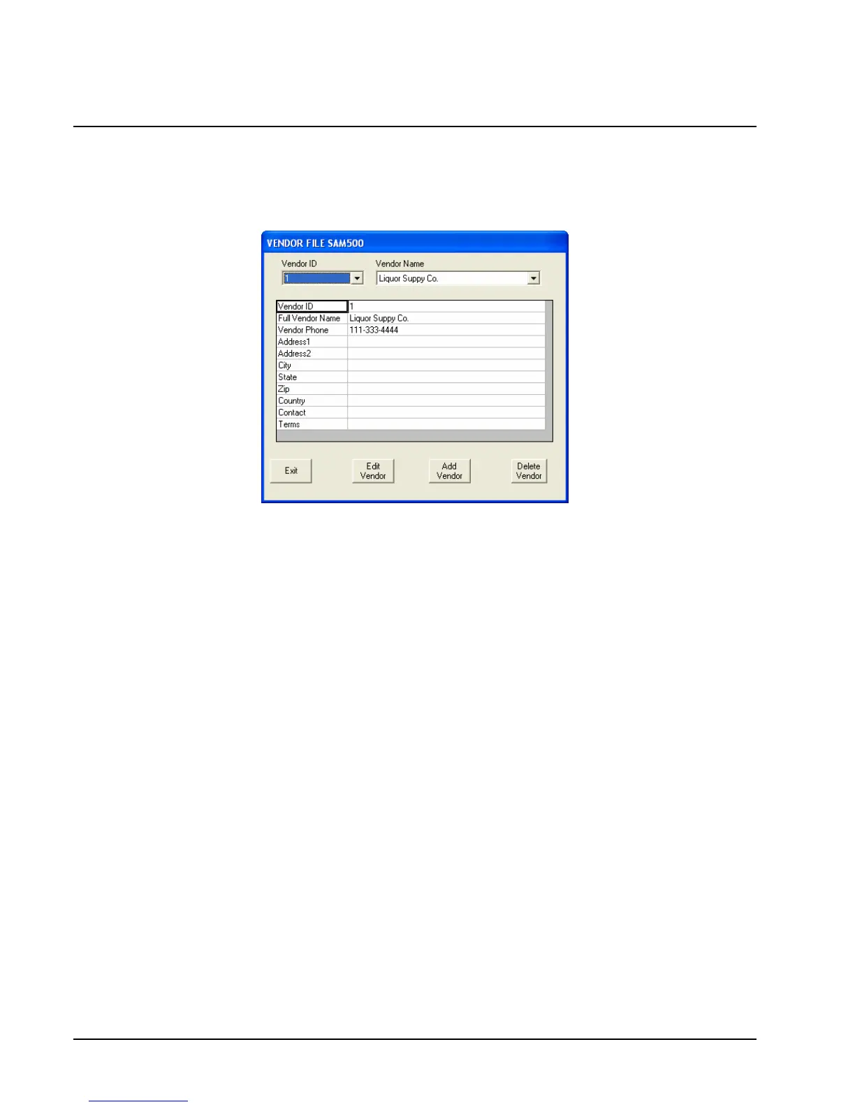down list box. Click Edit Vendor to open fields for entry.
