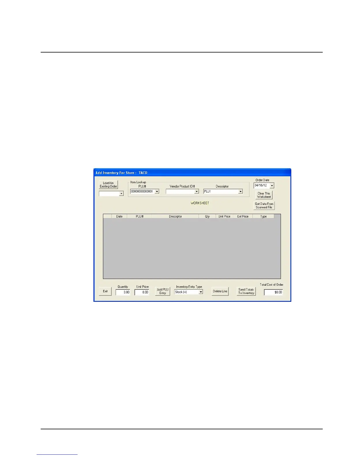 By Item, By shelf and By vendor inventory adjustment functions allow orders to be entered,