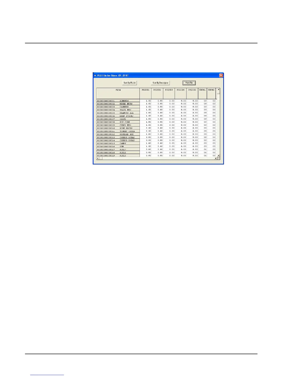 1. Choose PLU File from the Print menu to display and print out the PLU file of the