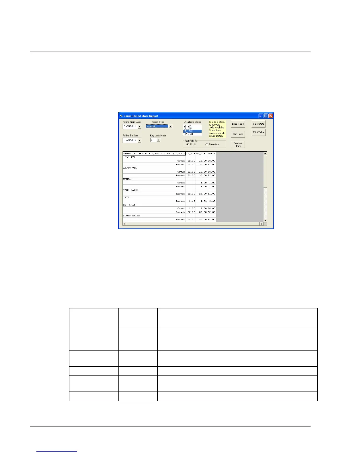 consolidated financial, PLU and group reports for all stores. The Consolidated Store