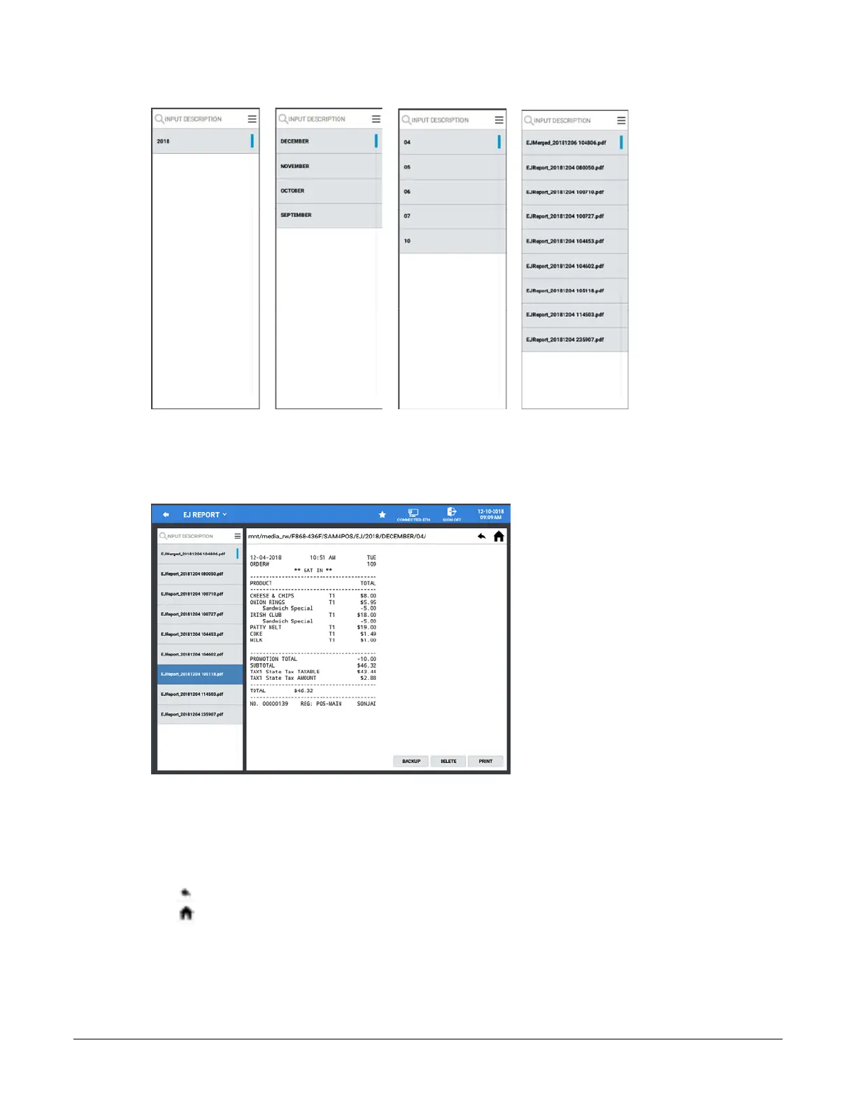 7. The EJ Report file path is displayed at the top of the display; the navigation icons can be used to: