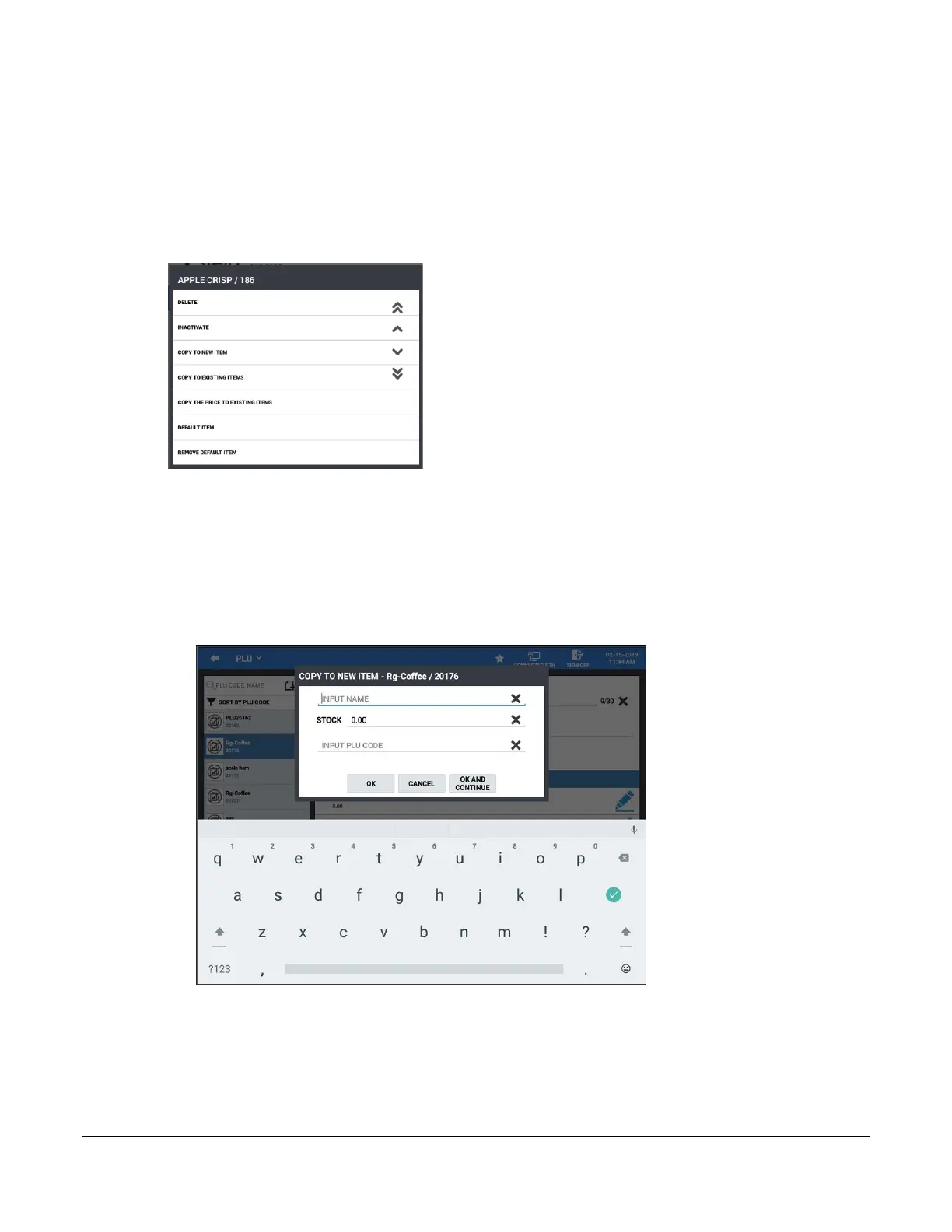 You can copy a selected PLU to a new item or copy the selected PLU to existing items. You can also choose to