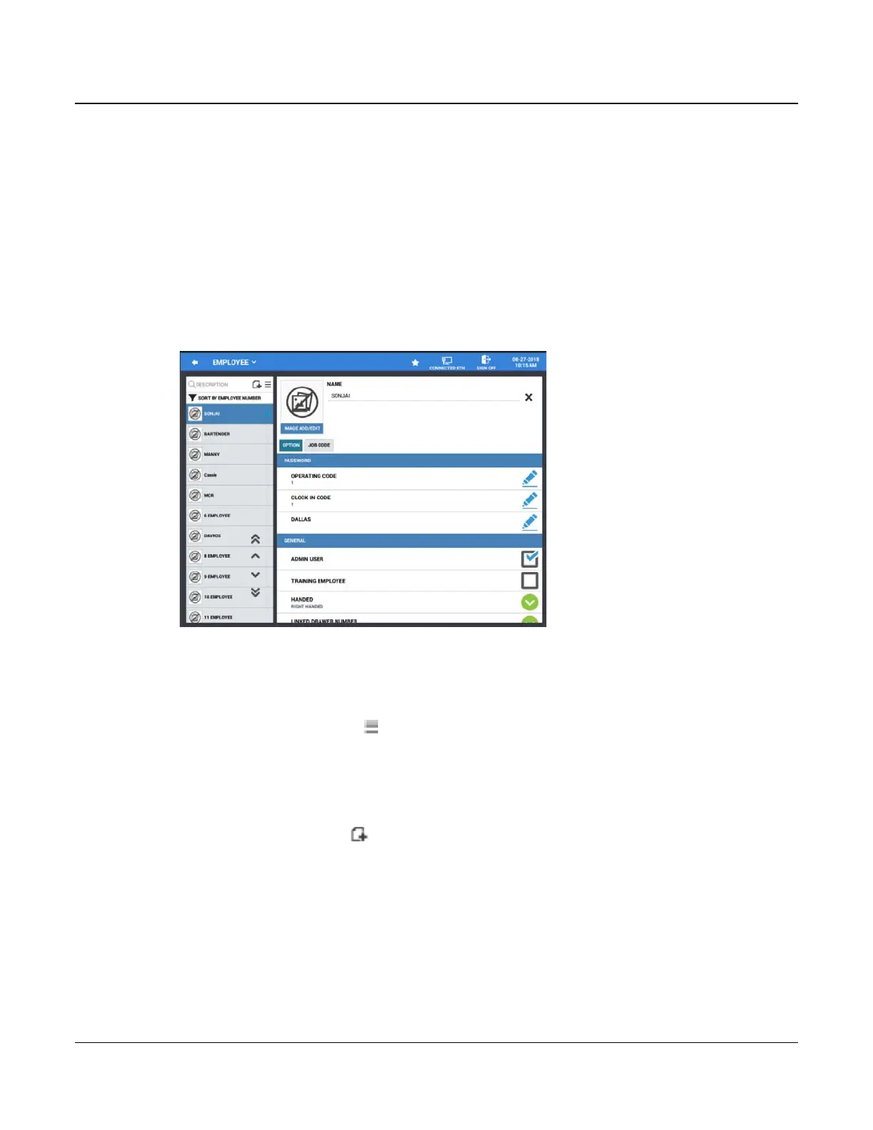 5. Touch the Edit/Sort Menu button on the employee programming screen.