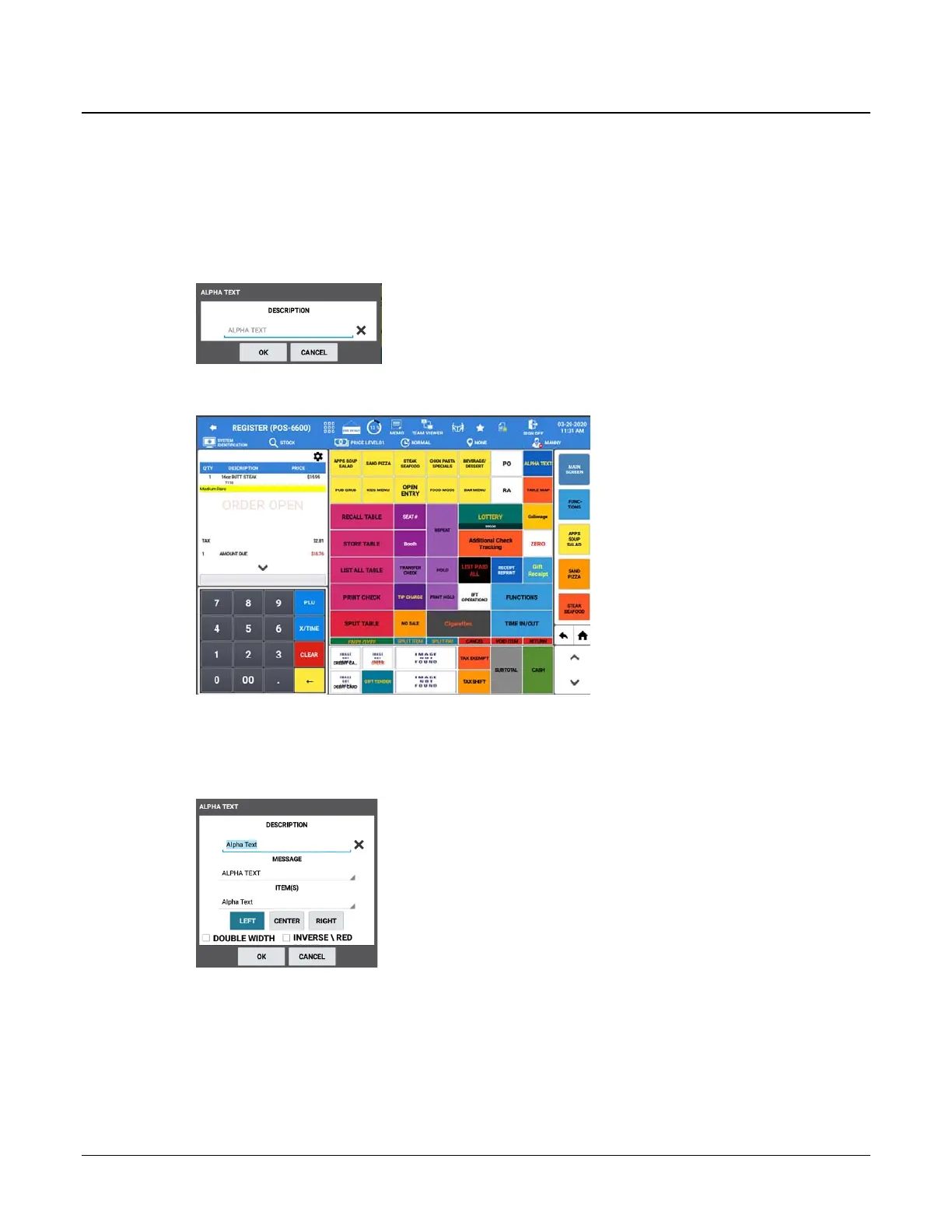 1. Register an item, then press the ALPHA TEXT key, the Alpha Text dialog displays: