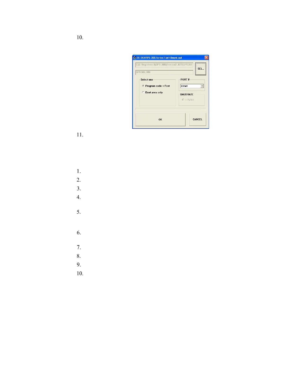 Click SEL… find the folder where the update files are located and select SPS300.bin.