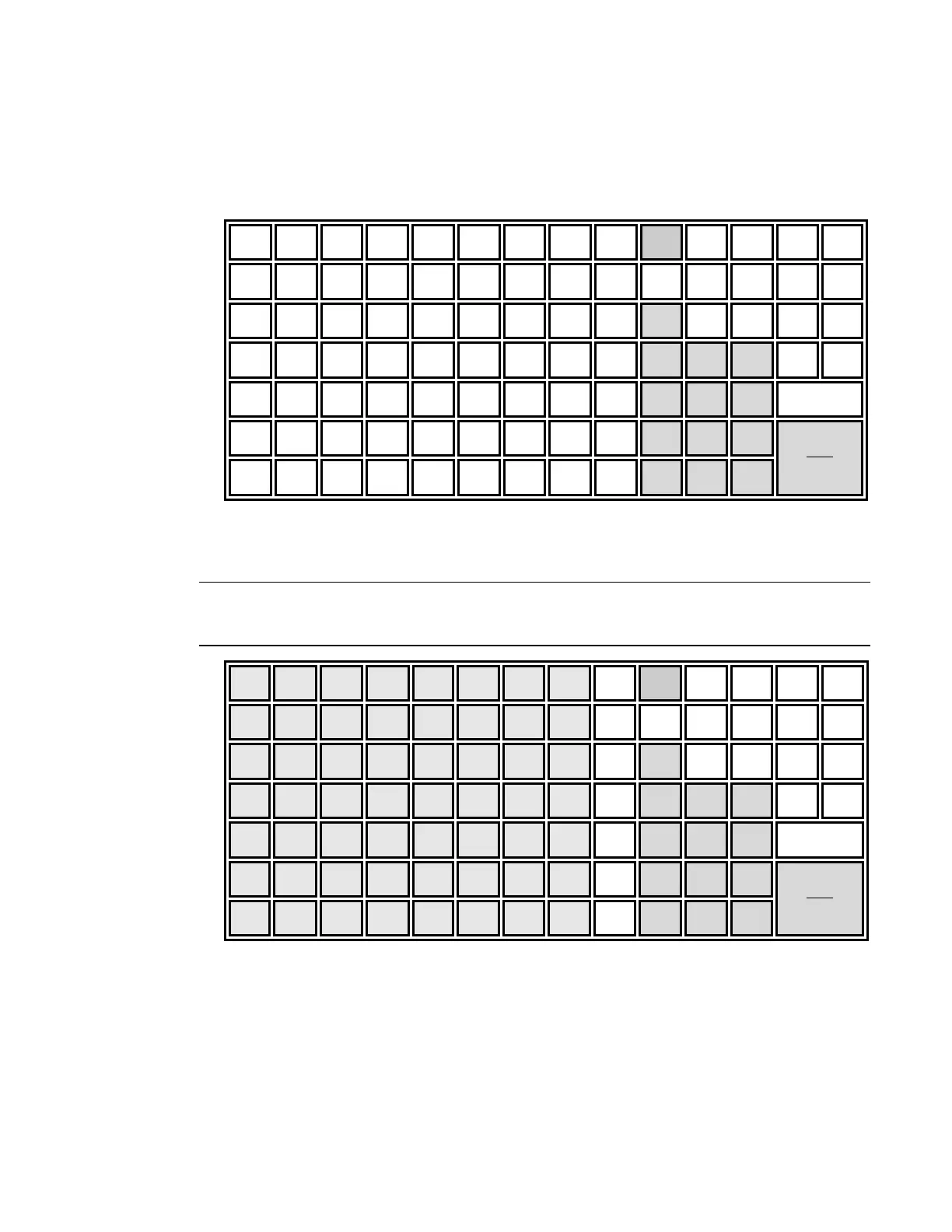 Shaded key locations are fixed and cannot be changed.