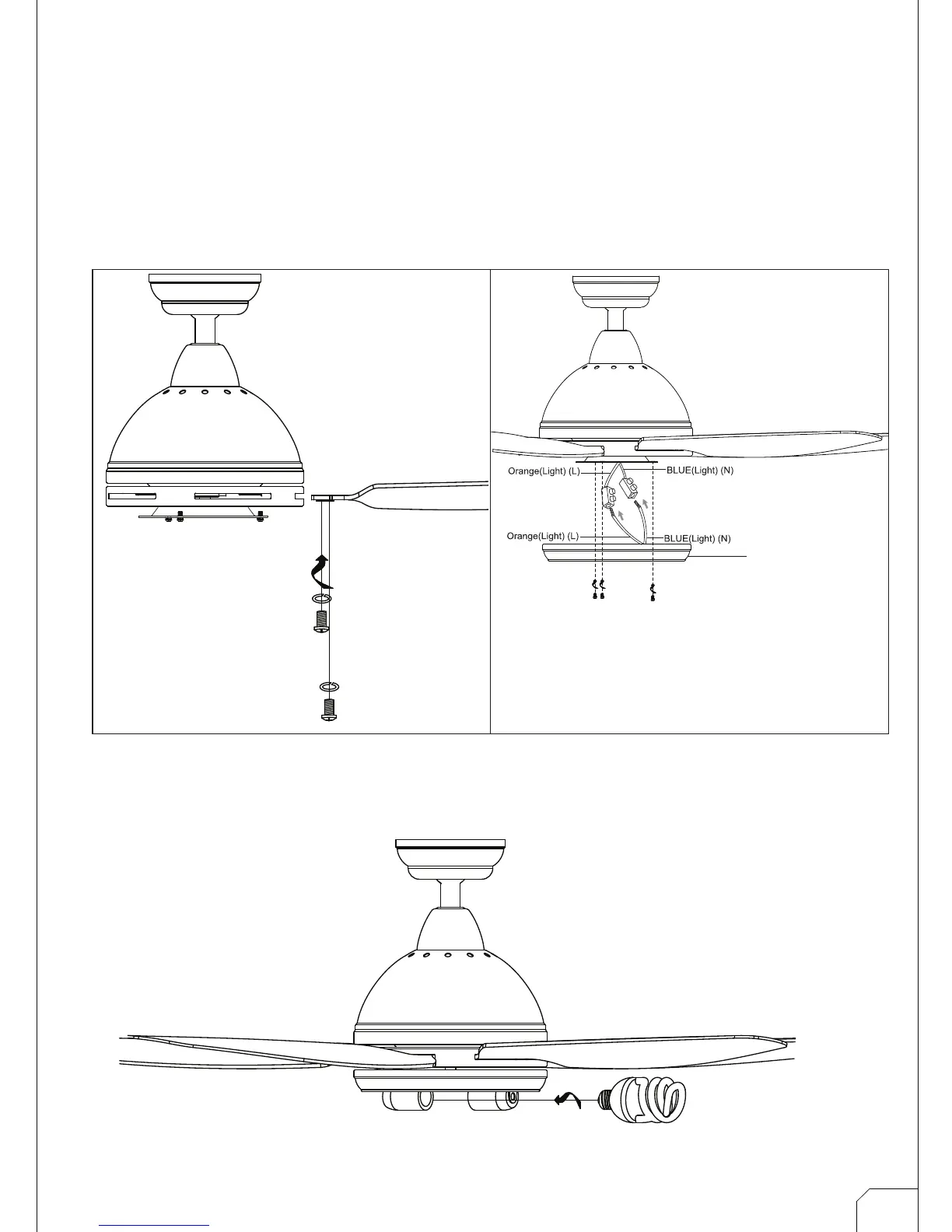 5B) Connect the blue and orange wire from the light kit to the fan motor wire, align the
