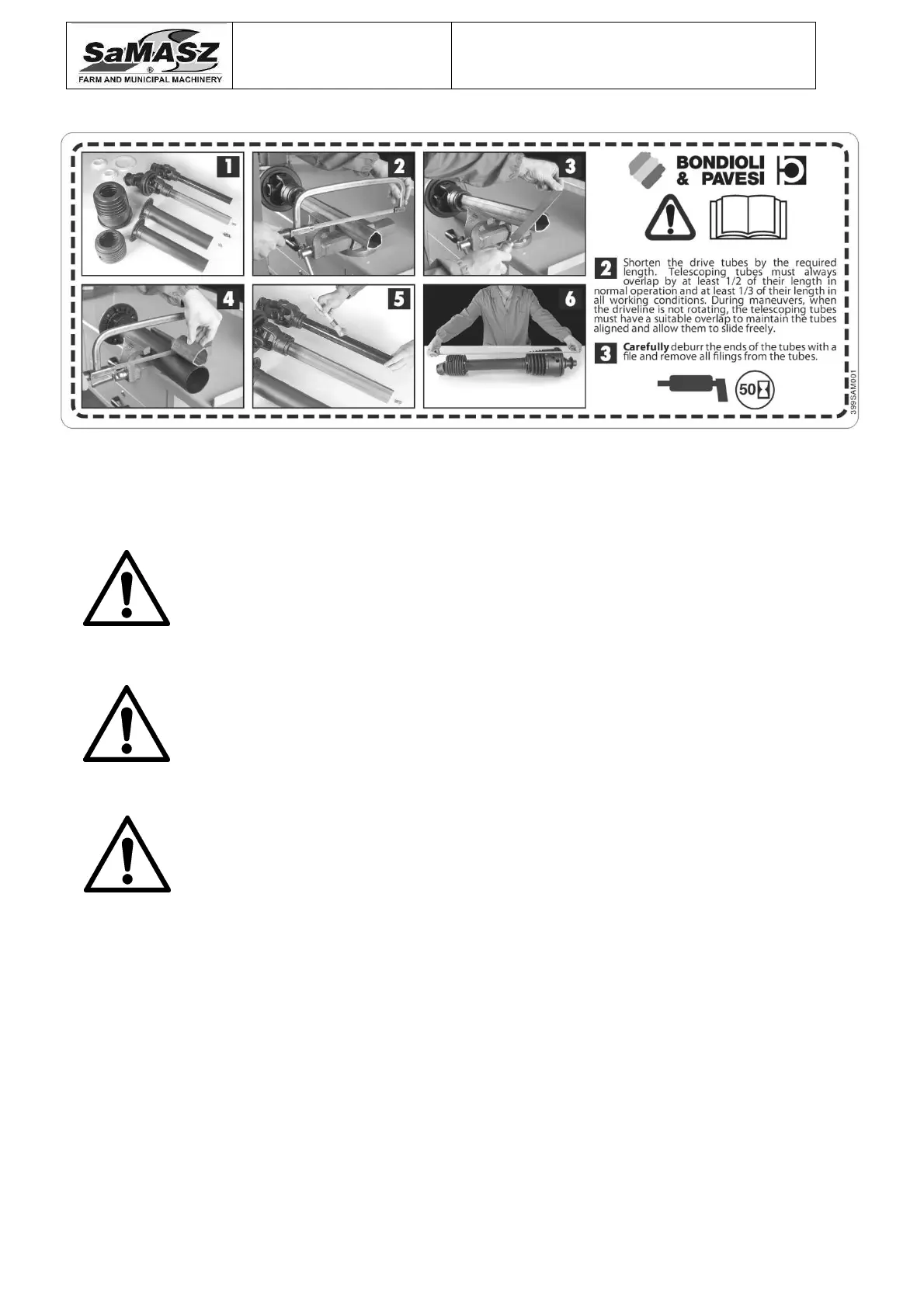 The manufacturer declines all liability for damage caused by an incorrectly fitted or used PTO shaft.