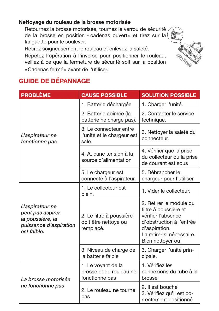 Nettoyage du rouleau de la brosse motorisée