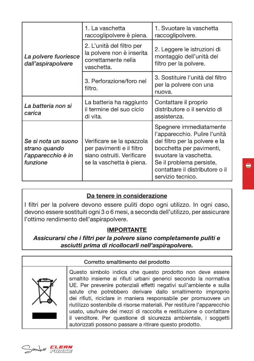 I ltri per la polvere devono essere puliti dopo ogni utilizzo. In ogni caso,