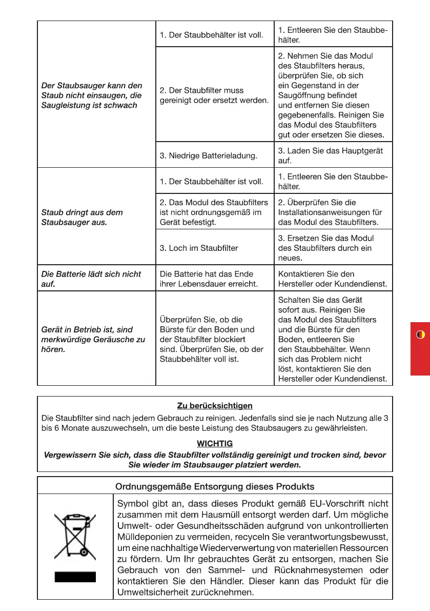 1. Der Staubbehälter ist voll.