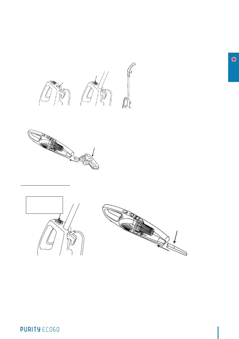 If use the handy vac: Press the handle release button (2) and pull out the handle,