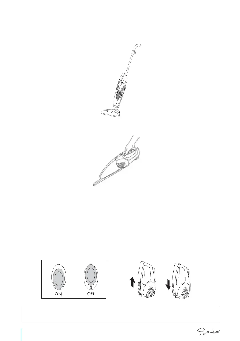 1. Tenir fermement le manche de l’aspirateur
