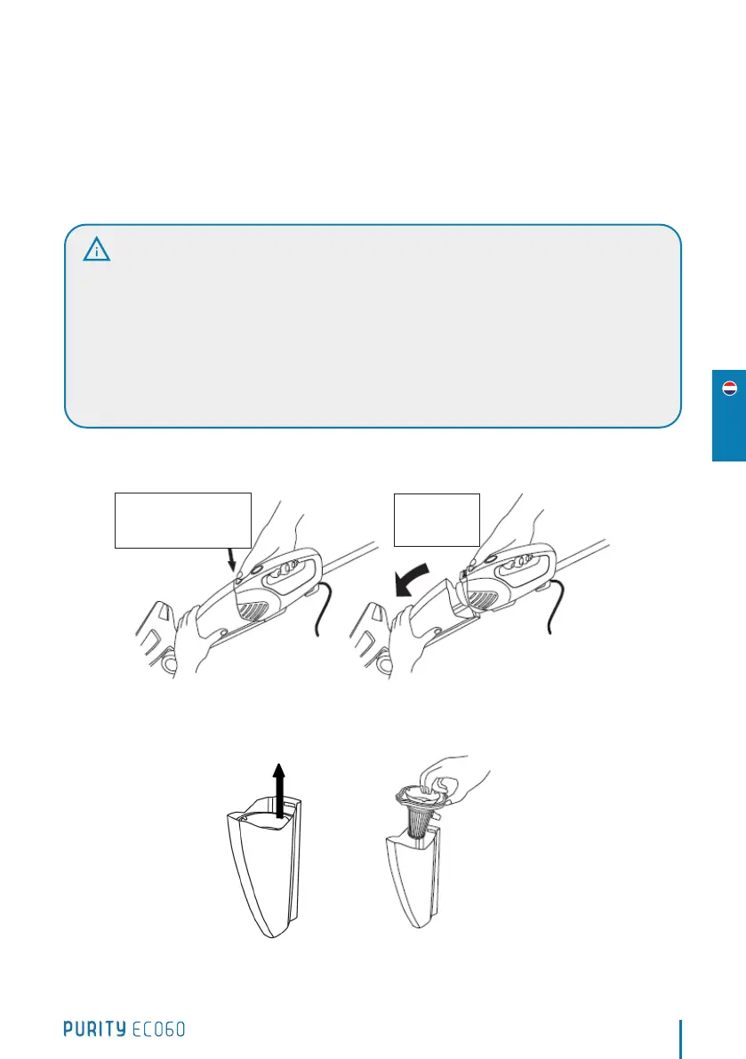 1. Pour ouvrir le réservoir an de soustraire la saleté, appuyez sur le bouton