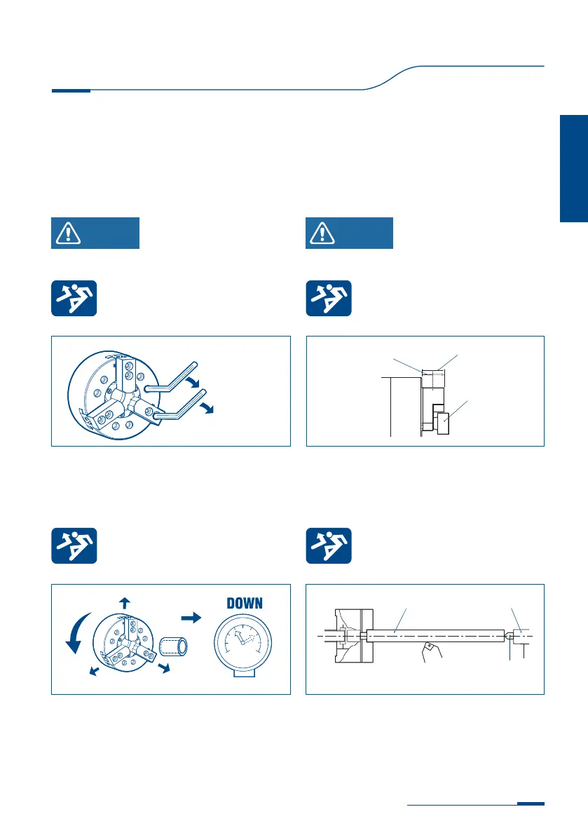 긴 공작물을 가공할 때 공작물의 이탈 (비산) 위험이 있습니다.