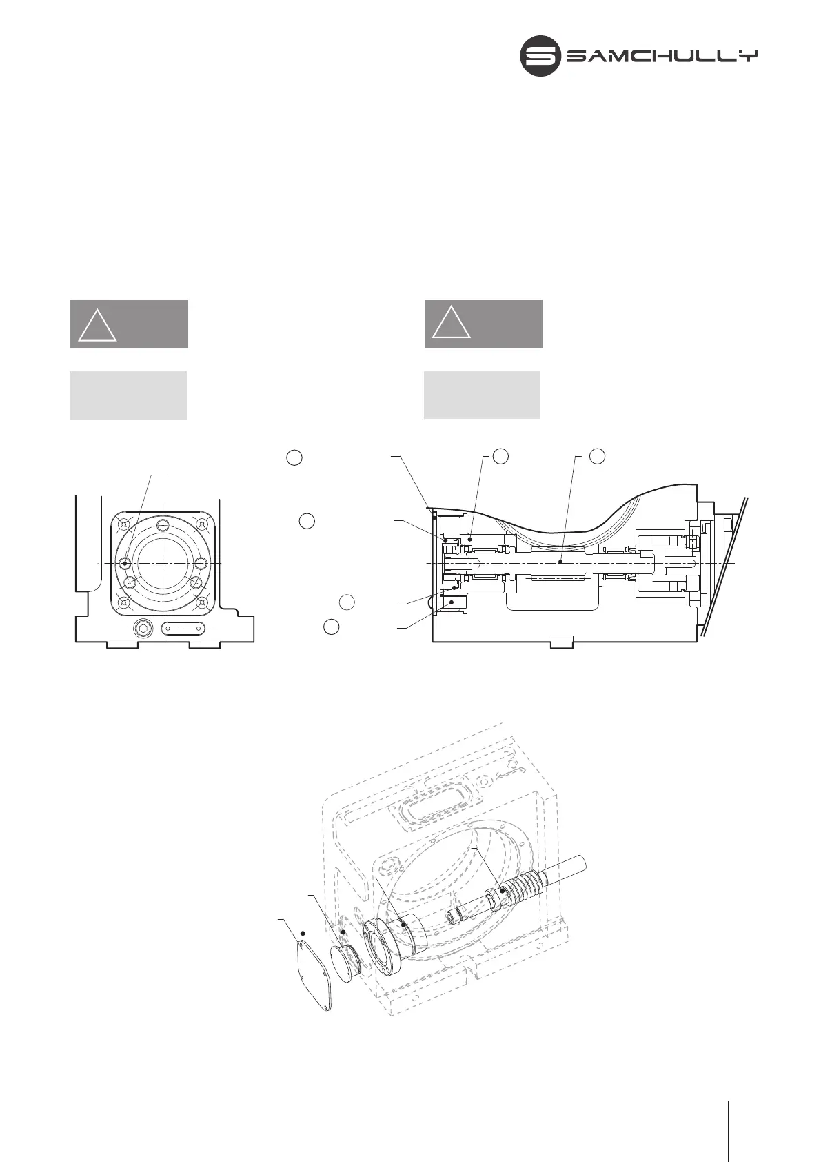 6) Adjust the backlash by turning the housing ③with the bolts