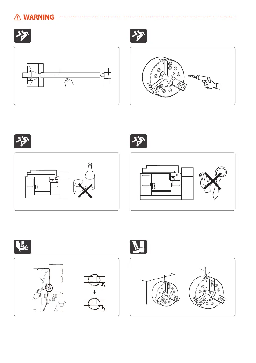 긴 공작물을 가공할 때 공작물의 이탈 (비산) 위험이 있습니다.