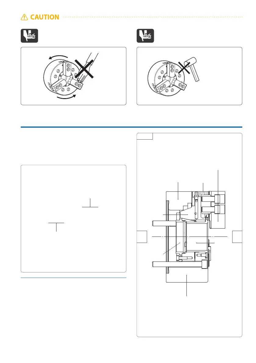 손가락이 부러지거나 절단의 위험이 있습니다. 척 파손시 공작물 이탈(비산) 될 위험이 있습니다.