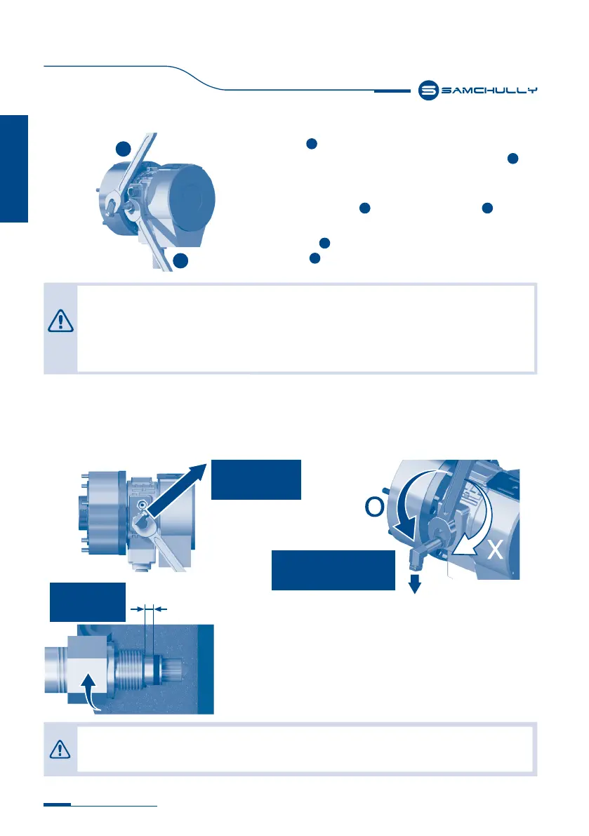 2. 체결된 유압 니플이 원하는 방향이 아닐 경우, 더 이상 회전 불가시 REDUCING NIPPLE을 더 세게 조이는게 아닌 시계 반대방향으로 풀