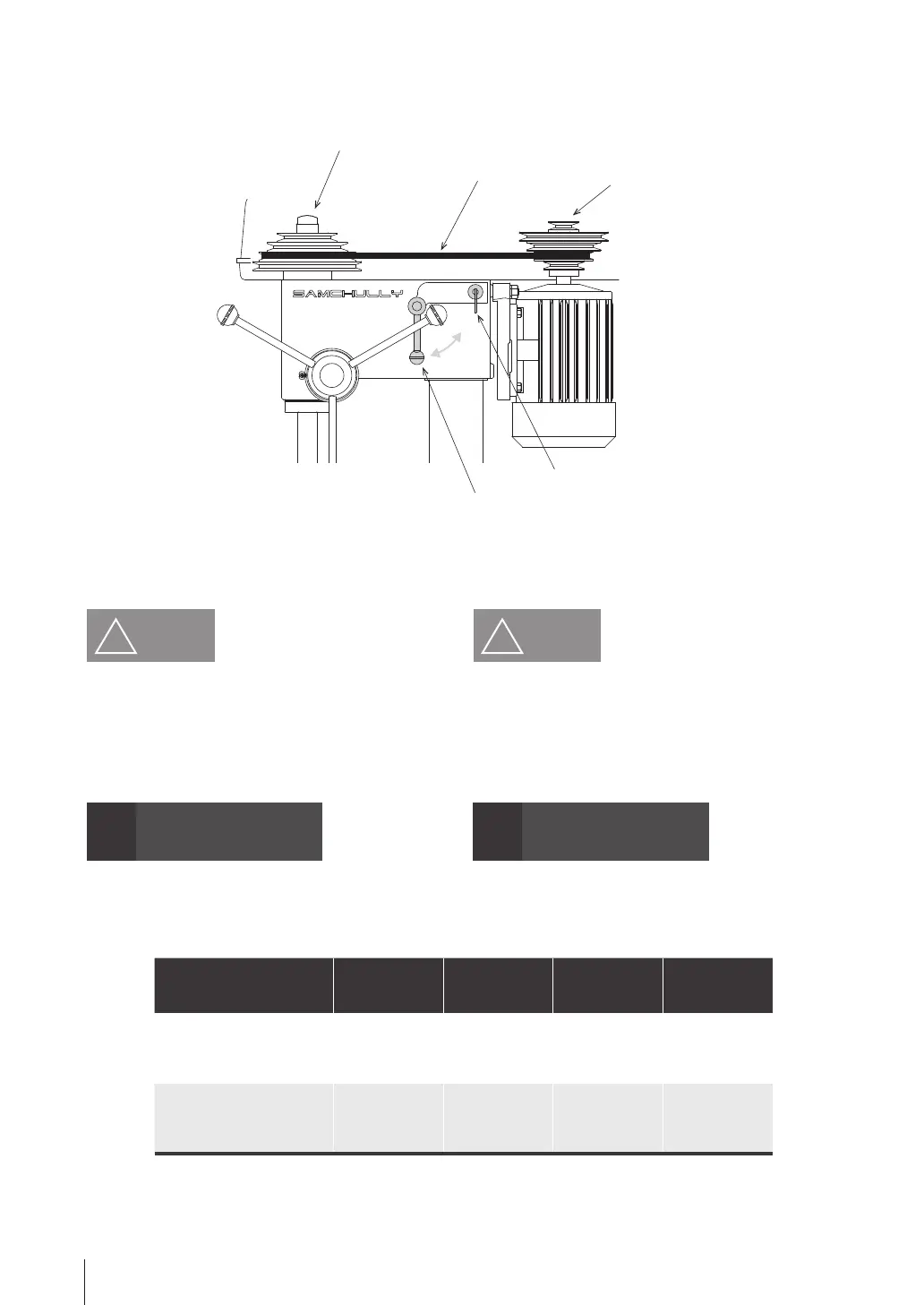 V-풀리의 윗단부터 1,2,3,4단으로 호칭하며 각단별 회전수는 아래