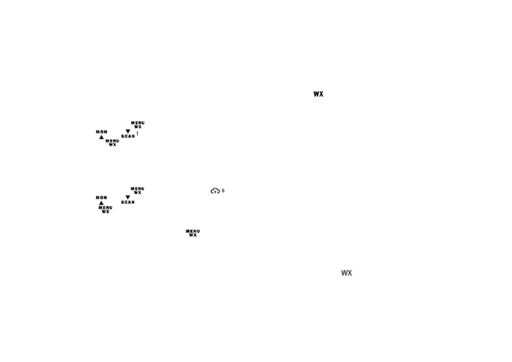 ● After the WX mode is activiated either manually or by receiving an alert, if no keys are pressed for 5 minutes,
