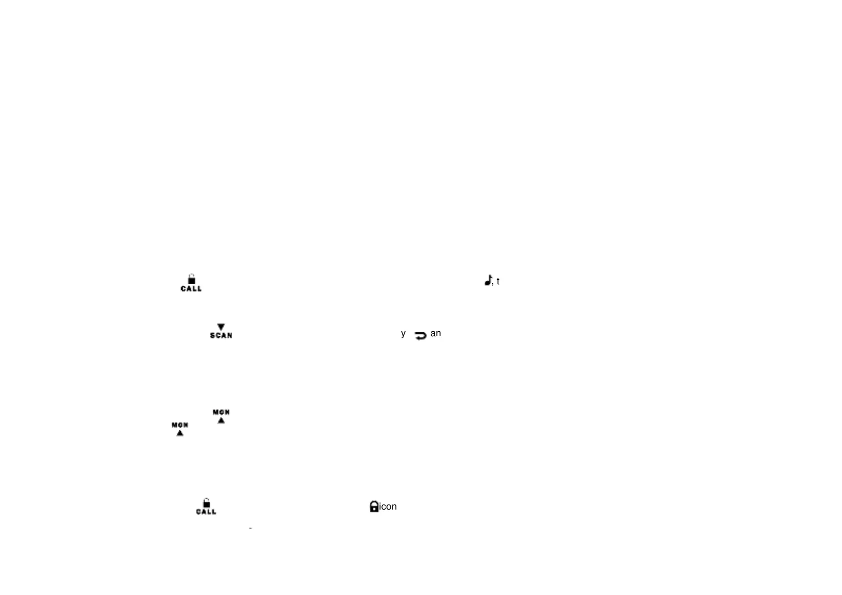 ● Press and hold the key for 3 seconds and LCD will display and radio will start scanning.