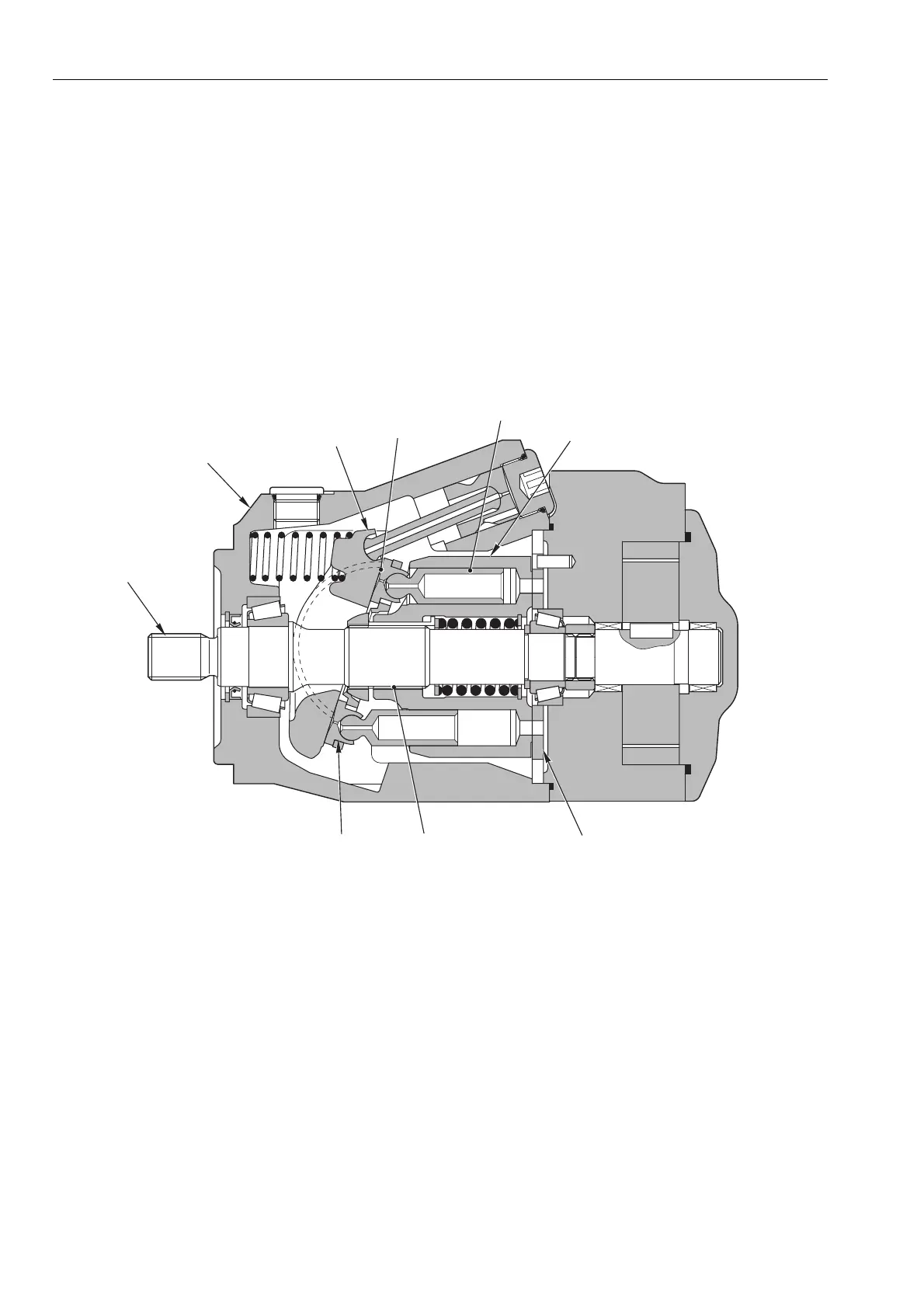 The ends of the pistons are spherical; the piston shoes (6)