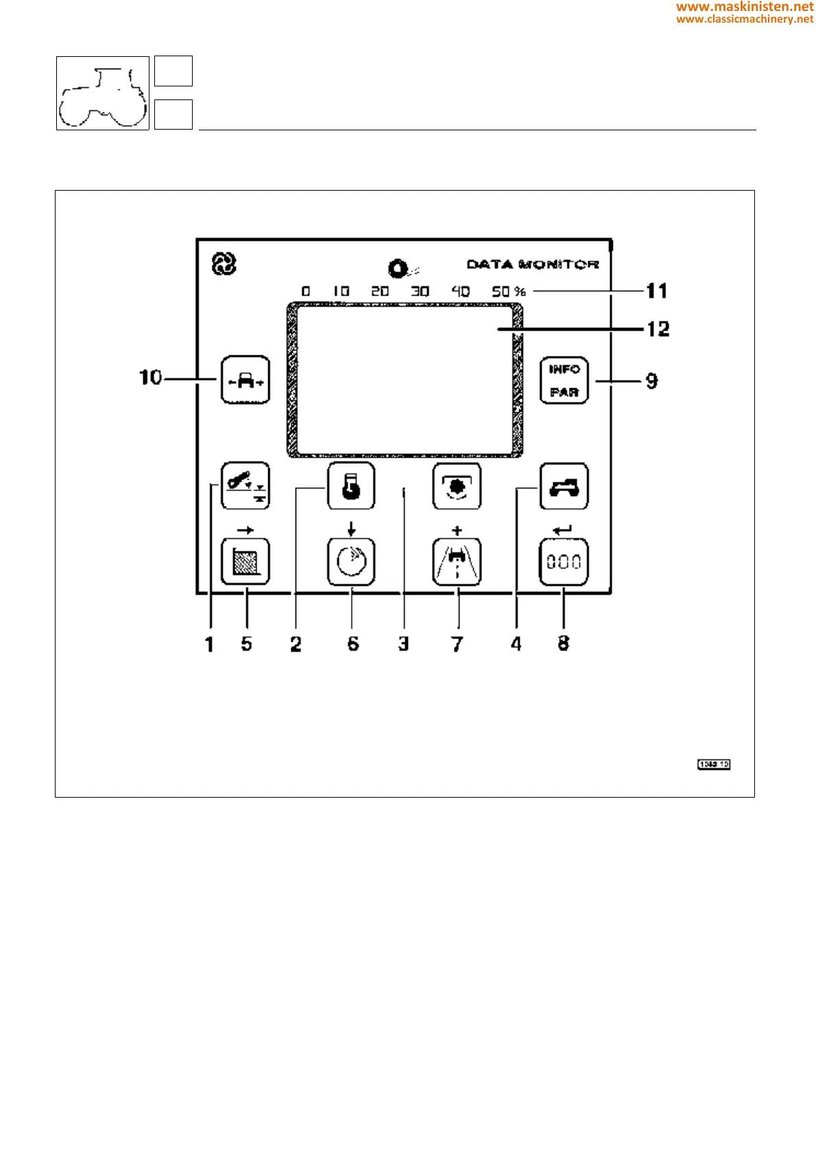 9 - INFO selection pushbutton (data monitor function)/PAR (lift function