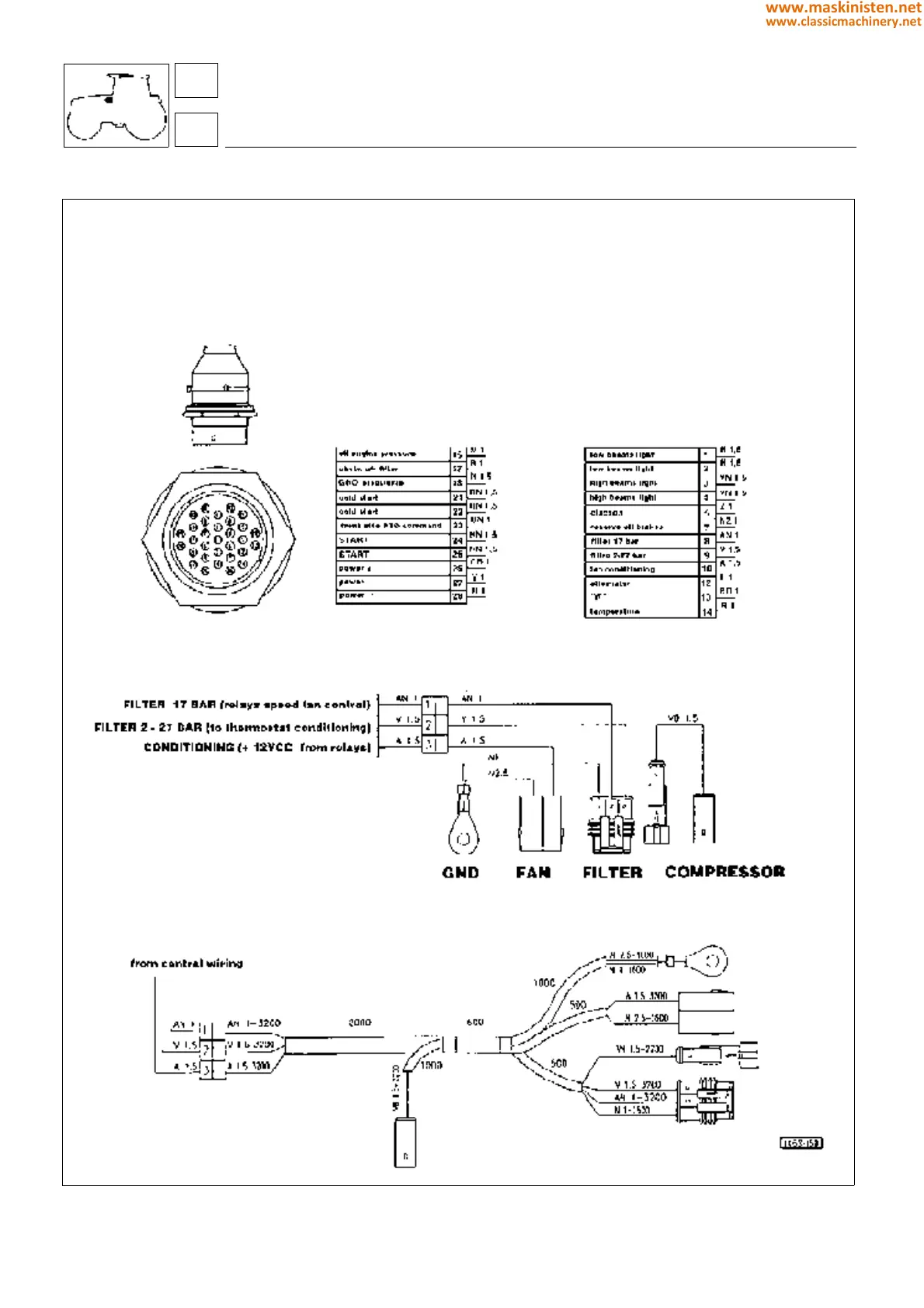 connected to the central harness of the machine. This figure shows the tractor connector to enable identification of
